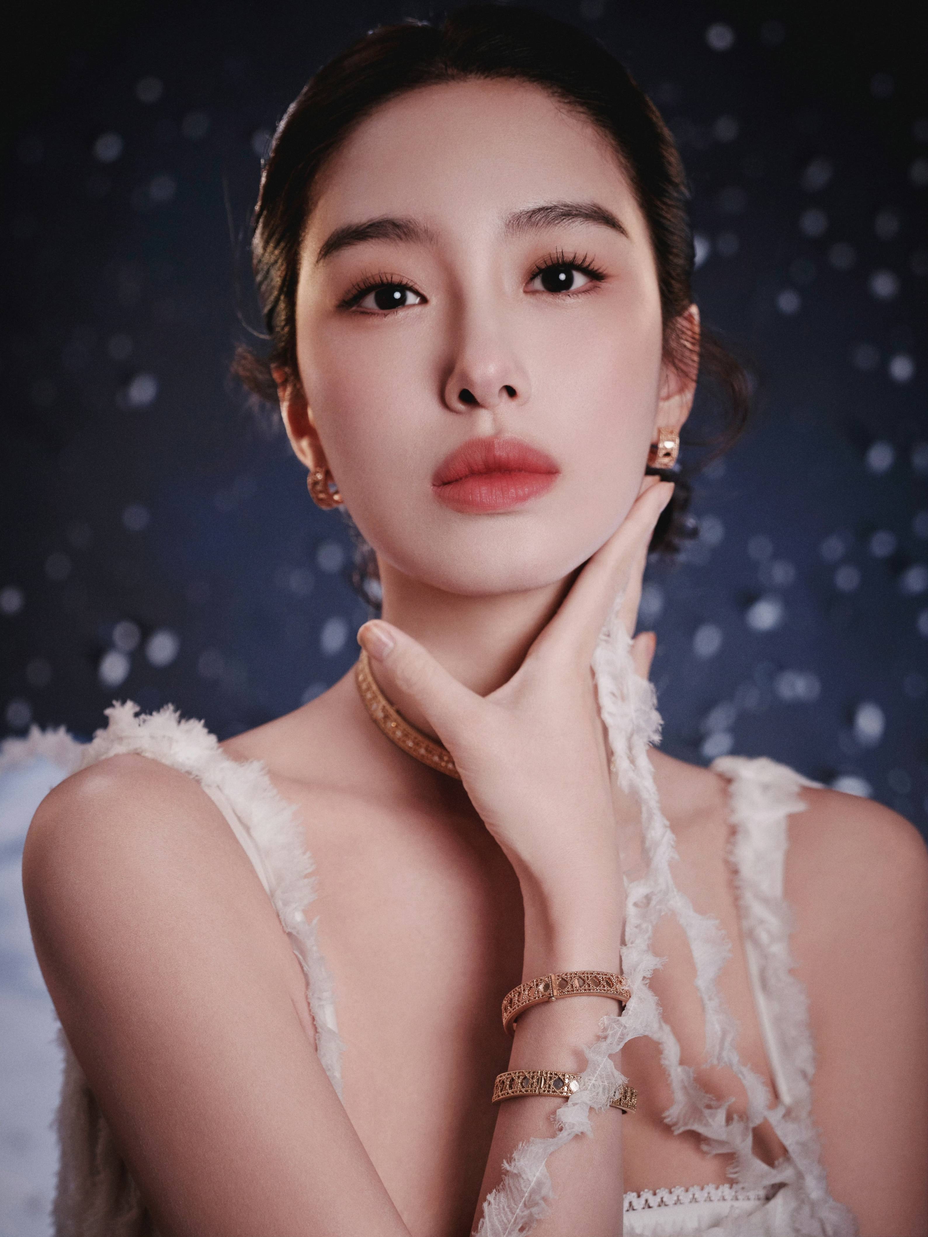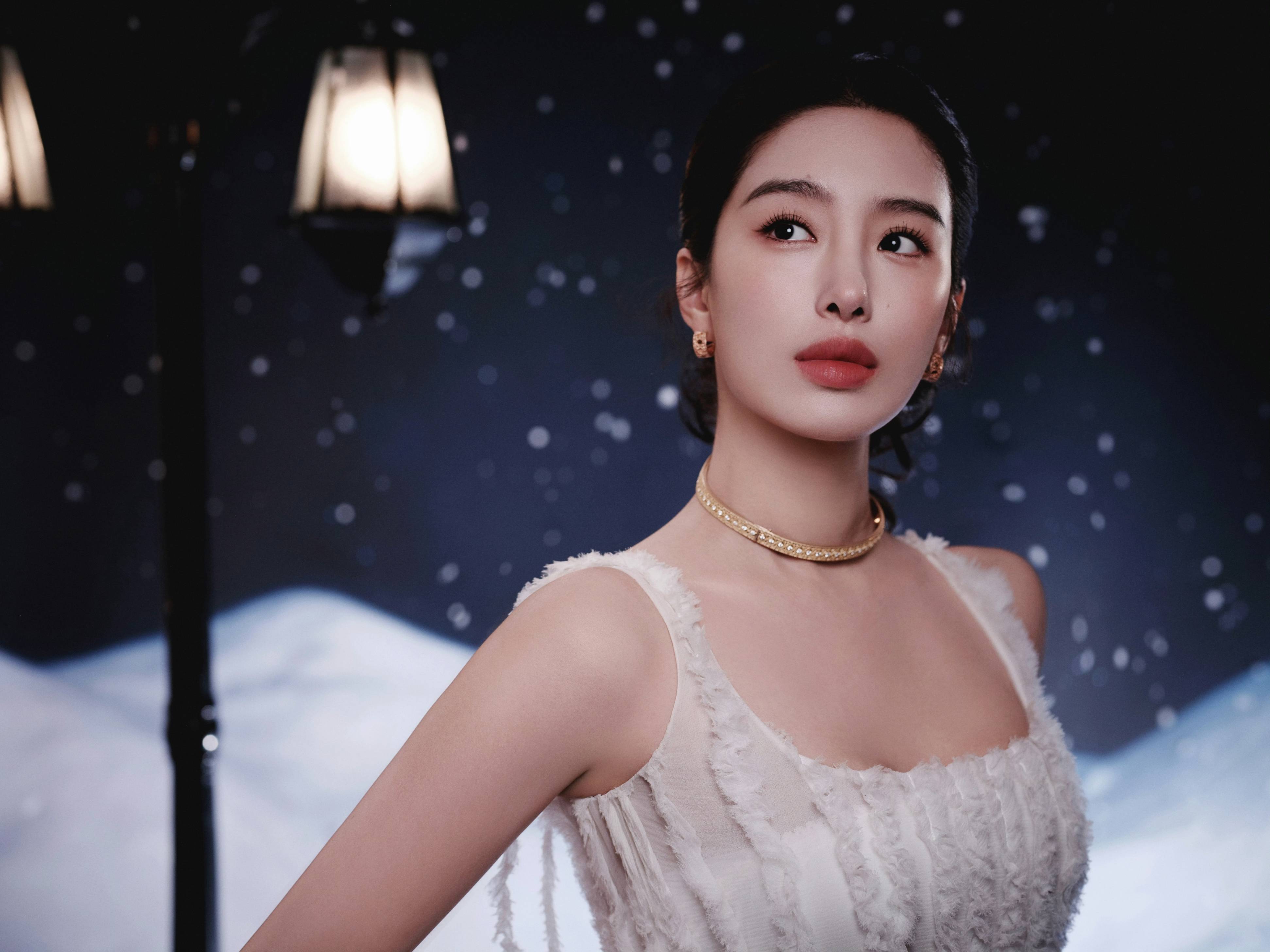 抬眸时是清冷的柔,浅笑间又漾开甜,每帧都是冬夜里的温柔意象。
