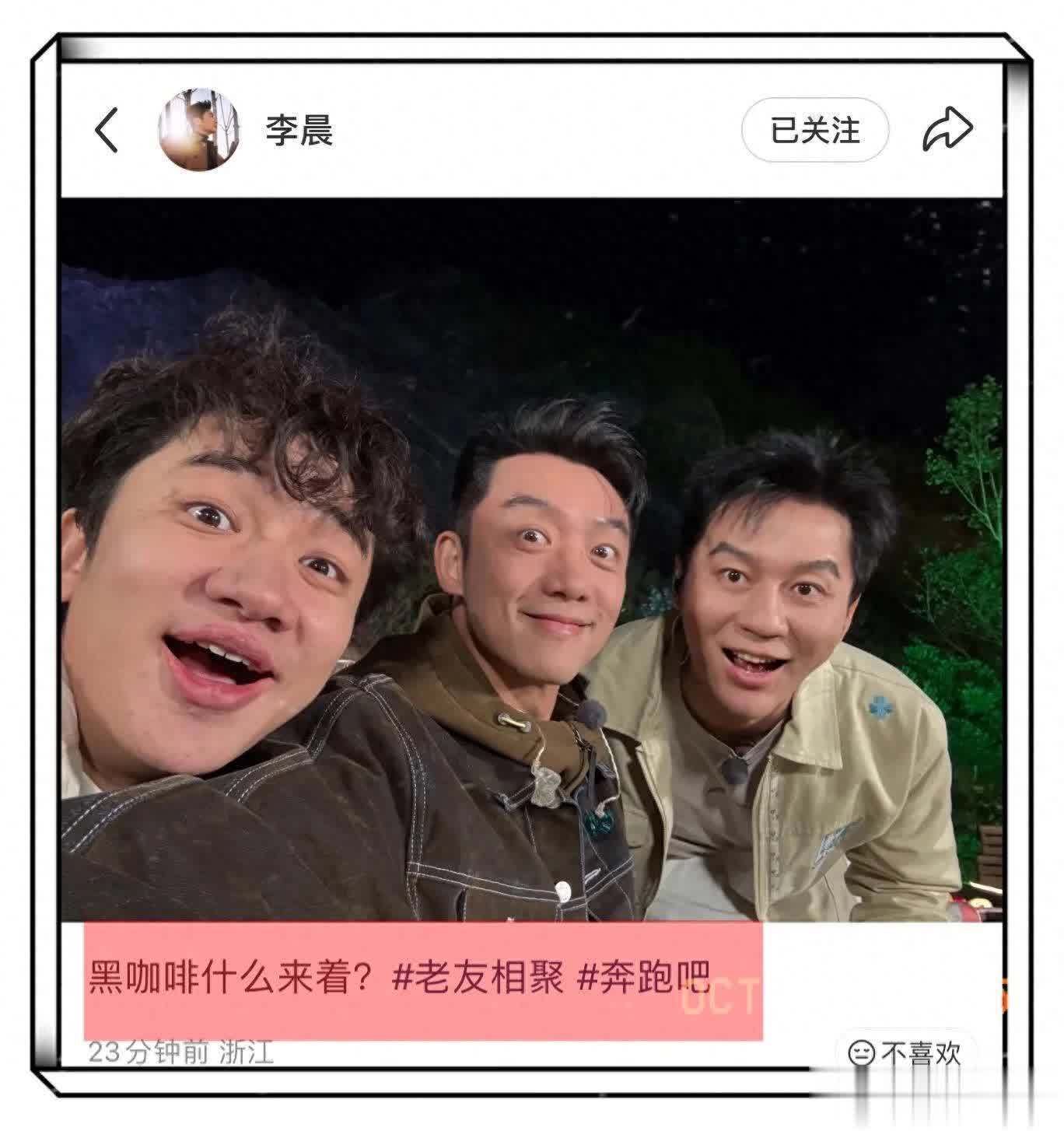 有网友发文李晨在网上晒出了他与郑恺王祖蓝的合照!